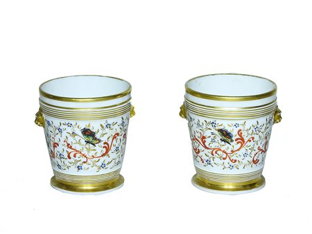 Coppia di portavasi in porcellana metà del XIX secolo dipinti con volute e...