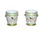 Coppia di portavasi in porcellana metà del XIX secolo dipinti con volute e girali, motivi floreali e farfalle, lumeggiature in oro, corredati da sottovasi h cm 14,5