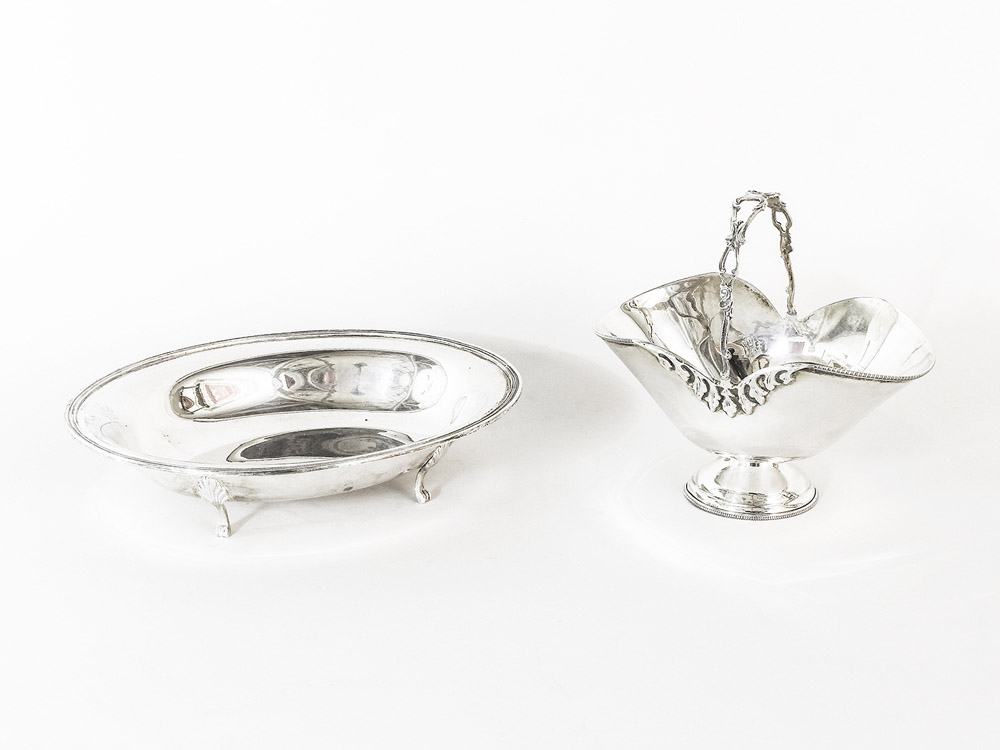 Lotto di argenteria una vaschetta ovale ed un cestino gr 350 (2)