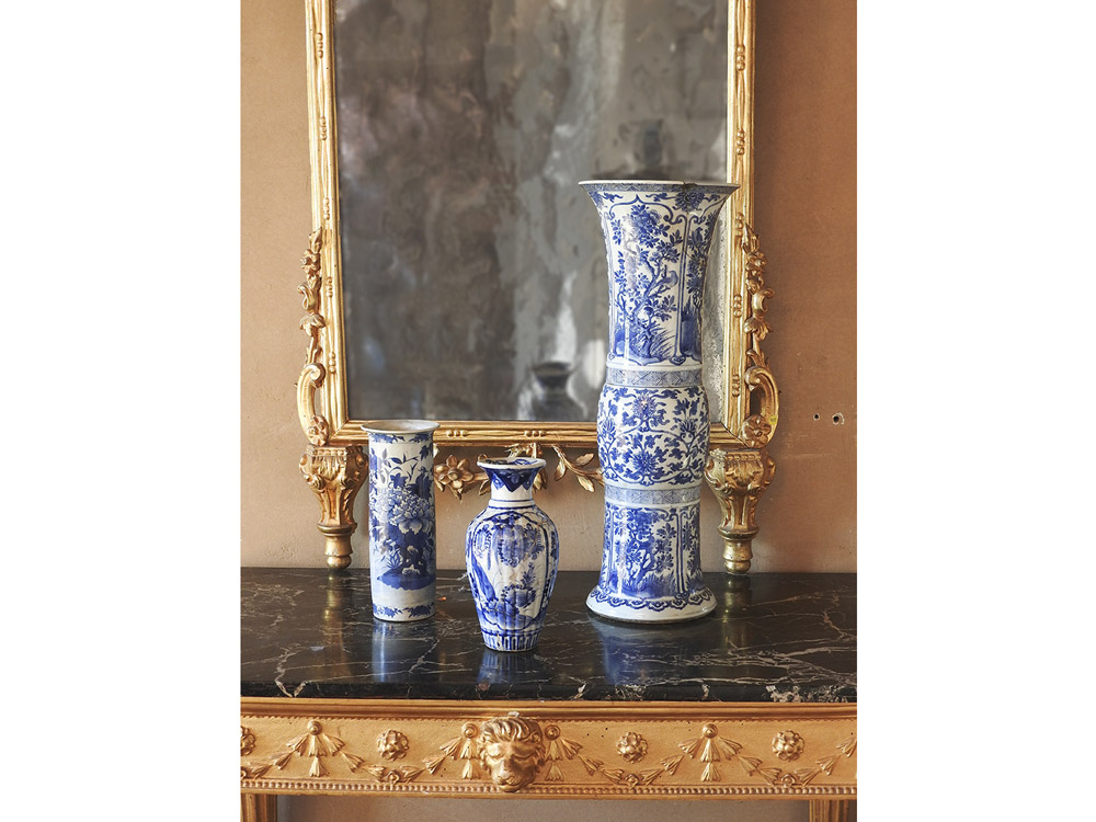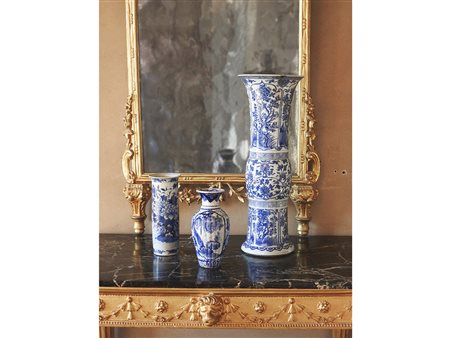 Grande vaso in porcellana Cina, XIX secolo dipinto in monocromia blu ed altri due più piccoli, difetti e restauri (3)