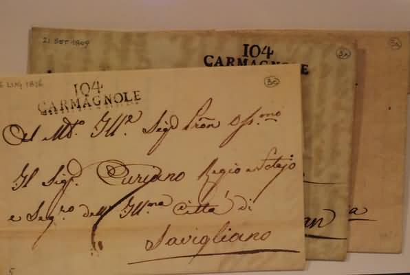 PREFILATELIA - 1803-16, 104 CARMAGNOLE, 3 lettere: 2 in periodo...