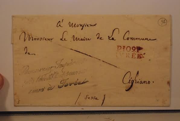 PREFILATELIA - P.109P. IVREE, rosso, su franchigia per Cigliano, senza testo né data, comunque in periodo dipartimentale. A lato bollo di franchigia del Procuratore Imperiale.(LETTERA)