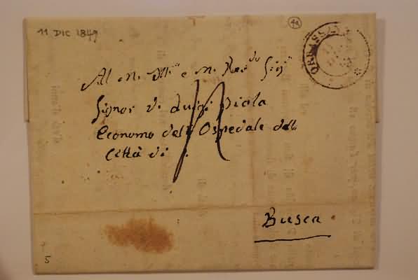 PREFILATELIA - 1849, ORBASSANO, doppio cerchio rossastro su lettera tassata per Busca, 14/12/49.(LETTERA)