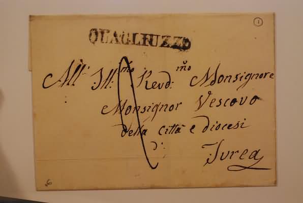 PREFILATELIA - QUAGLIUZZO, lineare su lettera tassata per Ivrea, senza testo né data.(LETTERA)