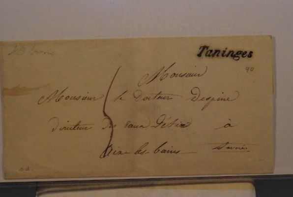 PREFILATELIA - TANINGES corsivo su lettera tassata per Aix-les-Bains, senza testo nè data.(LETTERA)