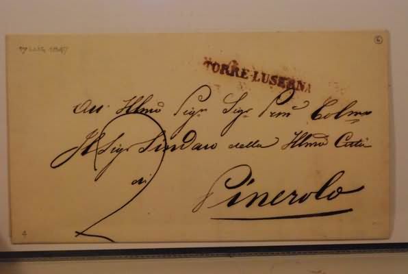 PREFILATELIA - 1847, TORRE-LUSERNA, lineare rossastro su lettera tassata per...