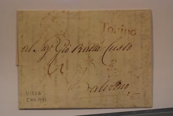 PREFILATELIA - 1791, lettera da Nizza per Palermo. Sul fronte tassa e lineare "Torino".(LETTERA)