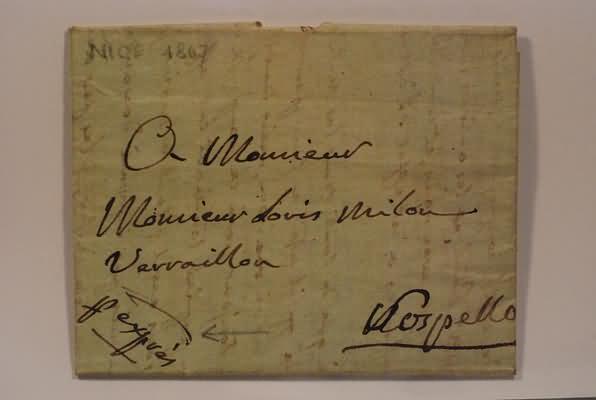 Lotto 158 | PREFILATELIA - 1807, lettera da Nizza per Sospello con manoscritto "p....