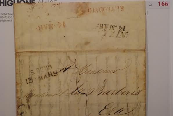Lotto 166 | PREFILATELIA - 1837, lettera da Ceriana per Eza, messa in posta a S. Remo,...