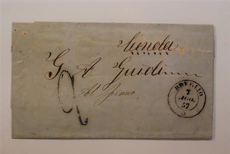 FRANCHIGIE, PORTI PAGATI E DOVUTI - 1857, BREGLIO doppio cerchio su lettera...