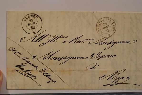 FRANCHIGIE, PORTI PAGATI E DOVUTI - 1852, CLANZO doppio cerchio su franchigia per Nizza, 25/3/52. A lato doppio cerchio di S. Martino del Varo.(LETTERA)