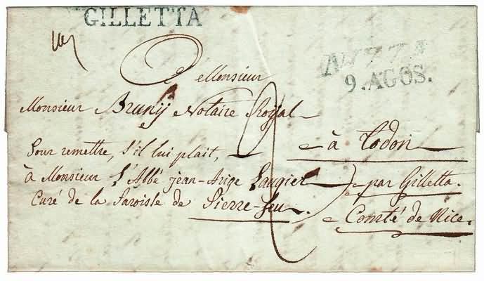 PREFILATELIA - 1838, GILLETTA lineare su lettera tassata per Todon.(LETTERA)