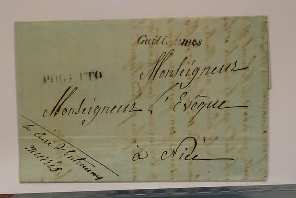 PREFILATELIA - 1848, GUILLAUMES corsivo su franchigia da Entraunes per Nizza. A lato lineare POGETTO.(LETTERA)
