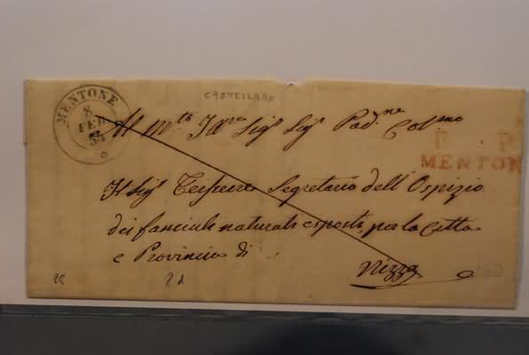 FRANCHIGIE, PORTI PAGATI E DOVUTI - 1854, MENTONE doppio cerchio + P. P. MENTON rosso su lettera da Castellaro per Nizza, 8/2/54.(LETTERA)