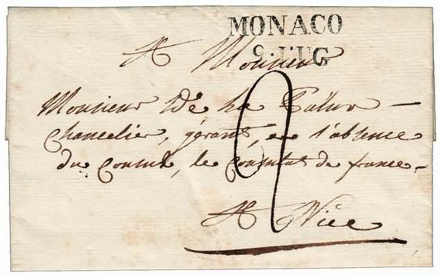 PREFILATELIA - 1827, MONACO lineare su lettera per Nizza, tassata.(LETTERA)