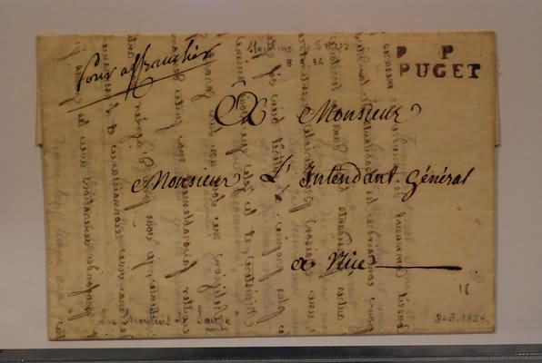 PREFILATELIA - 1834, P. P. LE PUGET, lineare brunastro, numero scalpellato, lettera per Nizza.(LETTERA)