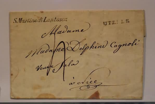 FRANCHIGIE, PORTI PAGATI E DOVUTI - S. MARTINO DI LANTOSCA, corsivo su lettera tassata per Nizza, con lineare "UTELLE'" in transito.(LETTERA)