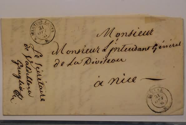 FRANCHIGIE, PORTI PAGATI E DOVUTI - 1855, S. MARTINO LANT.A doppio cerchio su franchigia per Nizza, 31/10/55.(LETTERA)