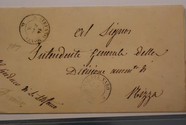 PREFILATELIA - 1856, S. STEFANO MONT.A doppio cerchio su franchigia per Nizza. A lato doppio cerchio di S. Martino del Varo.(LETTERA)