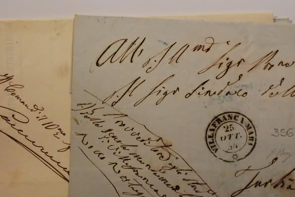 FRANCHIGIE, PORTI PAGATI E DOVUTI - 1849-56, VILLAFRANCA MAR.A doppio cerchio, lotto di 3 franchigie, una in periodo prefilatelico. Inoltre una lettera da Torino diretta ad un militare di stanza a Villafranca.(LETTERA)