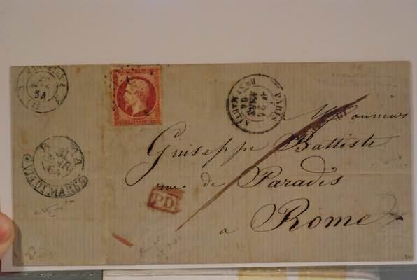 VIE DI MARE - 1864, lettera da Parigi per Roma, 24/3/64, per la via di mare...