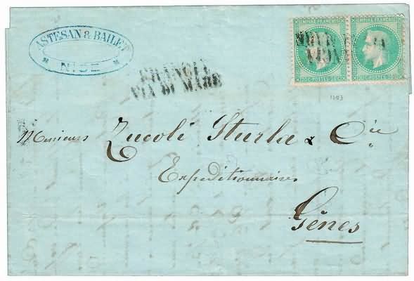 Lotto 267 | VIE DI MARE - 1869, lettera da Nizza per Genova affrancata con Napoleone 20...