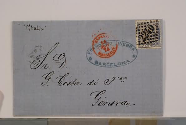 VIE DI MARE - 1874, lettera da Barcellona per Genova affrancata con Allegoria...