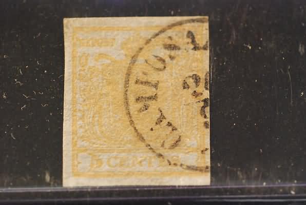 LOMBARDO VENETO - 1850, 5 c. ocra arancio (1e). (A.Diena).(USATO)