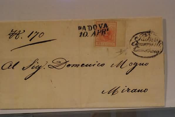 LOMBARDO VENETO - 1852, 15 c. rosa II tipo (5) bordo di foglio a destra, su lettera da Padova per Mirano, 10/4. (Sorani).(LETTERA)