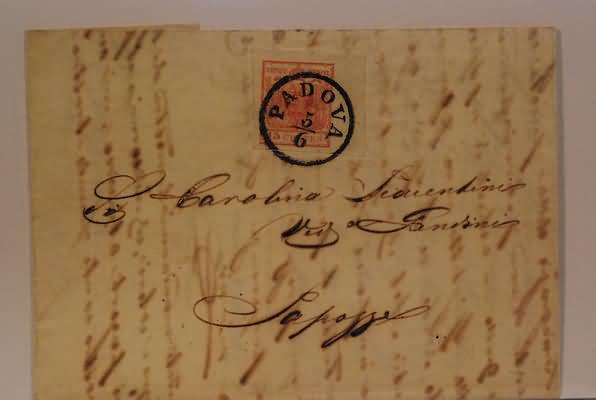 LOMBARDO VENETO - 1853, 15 c. rosso III tipo (6) bordo di foglio a destra, su lettera da Padova per Papozze, 5/6.(LETTERA)
