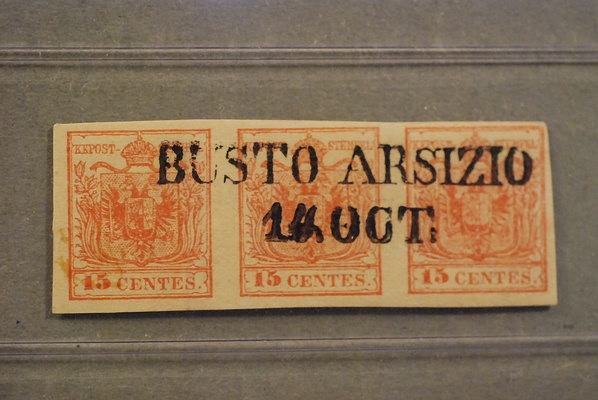 LOMBARDO VENETO - 1854, 15 c. rosso vermiglio, carta a macchina (20) striscia...