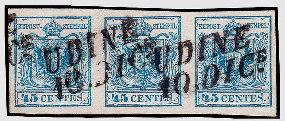 Lotto 321 | LOMBARDO VENETO - 1856, 45 c. carta a macchina (22) striscia orizzontale di...