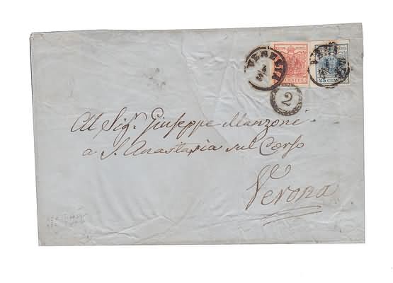 Lotto 324 | LOMBARDO VENETO - 15 c. + 45 c., entrambi carta a macchina (20+22) su lettera...