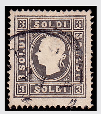 LOMBARDO VENETO - 1859, 3 s.grigio II tipo (29b).(USATO)