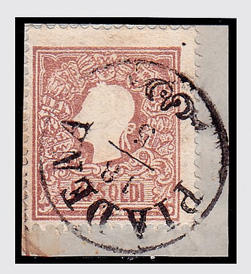LOMBARDO VENETO - 1859, Governo Provvisorio, 10 soldi bruno II tipo (31) su piccolo frammento con annullo di Piadena (p.12) del 18/5, periodo di guerra.(FRAMMENTO)