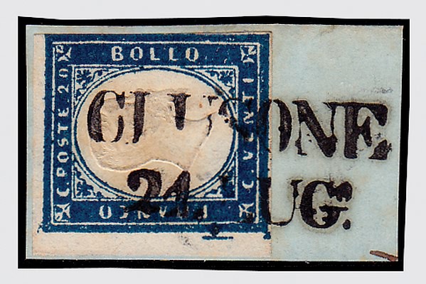 Lotto 358 | LOMBARDO VENETO - 1859, Governo Provvisorio, Sardegna 20 c. azzurro scuro...