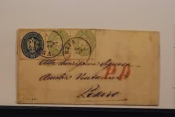 Lotto 391 | LOMBARDO VENETO - 1865, 3 soldi verde (42) coppia + 10 soldi azzurro (44) su...