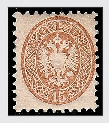 Lotto 394 | LOMBARDO VENETO - 1864, 15 soldi bruno (45) gomma integra.(GOMMA INTEGRA)