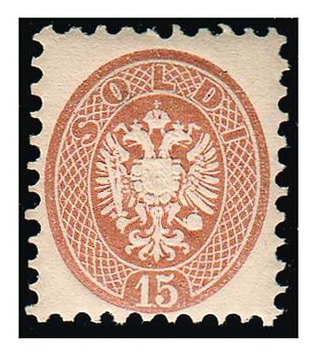 Lotto 395 | LOMBARDO VENETO - 1864, 15 s. bruno (45) gomma integra. Fresco.(GOMMA INTEGRA)