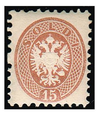 Lotto 396 | LOMBARDO VENETO - 1864, 15 soldi bruno (45). Fresco.(GOMMA ORIGINALE)