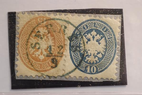 LOMBARDO VENETO - LEVANTE AUSTRIACO, 10 soldi + 15 soldi (44L+45L) su piccolo...