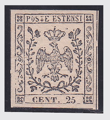 MODENA - 1852, 25 c. camoscio chiarissimo rosaceo (4b) gomma integra. (Cert. Colla).(GOMMA INTEGRA)