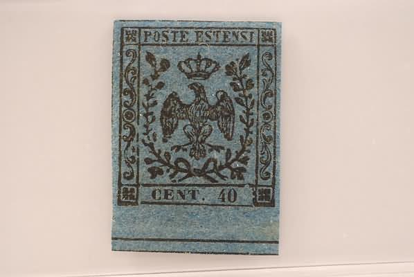 MODENA - 1852, 40 c. azzurro scuro (6) margine di interspazio in basso. (G....