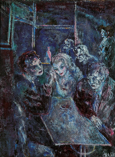 ALIGI SASSU Milano 17/07/1912 - Palma di Maiorca 17/07/2000 Al bar, 1936-38 olio su tela cm. 43x32, firma in basso a destra, dichiarazione d'autenticità dell'artista e timbro della Brerarte (MI) su foto.