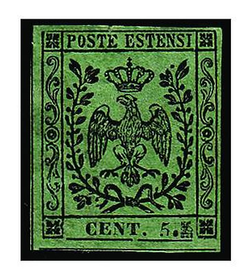 MODENA - 1855, 5 c. punto grosso dopo la cifra (8h) e con spazio tipografico...