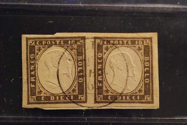 MODENA ANNULLAMENTI - 1862, CALICE doppio cerchio sardo-italiano (p.9) su Sardegna 10 c. oliva brunastro scurissimo (14Cbb). (E. Diena).(USATO)