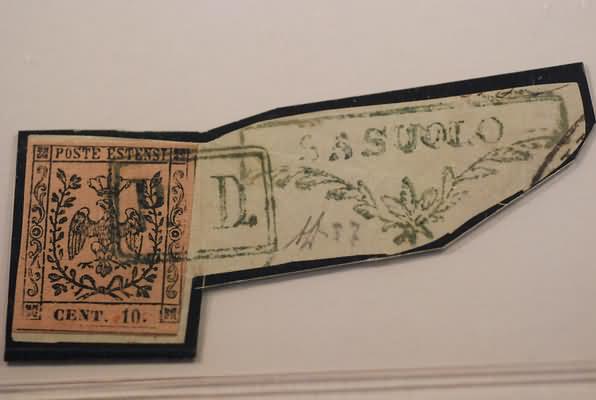 MODENA ANNULLAMENTI - 1854, SASUOLO, P.D. + cartella sagomata azzurro (p. 6) su 10 c. (9) su piccolo frammento. (A. Diena).(FRAMMENTO)