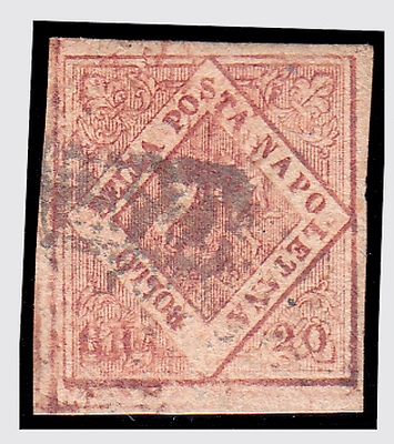 NAPOLI - 1858, 20 gr. rosa brunastro I tavola (12) ben marginato. (Em.Diena -...