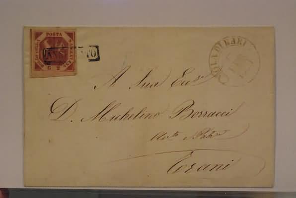 NAPOLI ANNULLAMENTI - 1860, MOLA DI BARI cerchio + ANNULLATO (p. 9) su 2 gr. (7) su lettera per Trani, 17/2/60. Bella qualità.(FRAMMENTO)