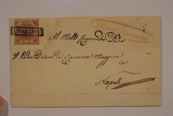 NAPOLI ANNULLAMENTI - MONTEPARANO ovale rosso + ANNULLATO (p.9) su 2 gr. (5) su lettera per Napoli.(LETTERA)